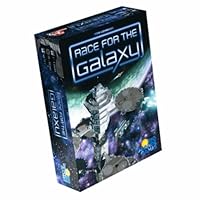 From the Manufacturer: In Race for the Galaxy, players build galactic civilizations by game cards that represent worlds or technical and social developments. Each round consists of one or more of five possible phases in each round, each player secretly and simultaneously chooses one of seven different action cards and then reveals it. Only the selected phases occur for these phases, every player performs the phase's action, while the selecting players also get a bonus for that phase. For example, if at least one player chooses the develop action, then the develop phase will occur; otherwise it is skipped in it, each player may simultaneously select a development from his hand of cards to build. After revealing the cards, each player adds his development to his tableau of cards on the table and then discards cards from his hand equal to its cost. Each player who chose develop discards one card fewer as his bonus. Explore allows a player to draw cards and select which of them to add to his hand. Settle allows a player to place a world in his tableau. Some worlds produce goods, represented by face down cards, when produce is selected. These goods can be discarded for victory points or sold to add cards to the player's hand by selecting consume. With cards, players can settle new worlds and build more developments, gaining both victory points and card powers that provide advantages in certain phases. The player, who best manages his cards, phase and bonus selections, and card powers to build the greatest space empire, wins. The winner is the player with the most victory points.