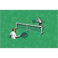 (More customer reviews)I think this is a good tennis set. You might need to lay a brick or rock on the feet because it will get knocked down if it's in a backyard. Had a fun time playing with this set and since I'm no pro the large rackets worked well for us.