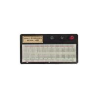 This top quality bredboard has 830 test points, with 126 separate 5 point terminals, plus 8 horizontal bus lines of 25 common test points each. Will accommodate up to (11) 14 pin DIP ICs, or (8) 16 pin DIP ICs. Includes three color coded binding posts (black, red, and green). Base material is heavy black anodized aluminum. Dimensions: 7-1/4" x 3-3/4". Net weight: 1/2 lb.From Elenco Electronics.