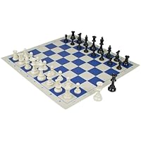 This is our lowest priced tournament size chess set and board package. It includes our single weighted Value Club Plastic Chess Set with a 3.75" king and our Value Vinyl Rollup Chess Board with 2 1/4" squares. Chess pieces are made from a durable, glossy plastic which makes a nice contrast against the blue and buff chess board. Pieces have green felt paper pads and spare queens are included! Pieces come packaged in heavy zip lock bags. A great package for tournaments and classrooms looking for a tournament size chess set and board at the lowest possible price!liKingHeight: 3.75"liKingBase: 1 1/2"liSetWeight: 1 lb.liBoardSquare: 2 1/4"liBoardDimensions: 20" x 1/16" thick
