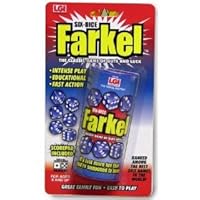The classic game of guts and luck is Farkel and this is the classic Farkel set.It is still small enough for portability, the game tube measures 4.5 tall and 2 wide. It includes 6 regular sized blue playing dice, a roll-up score pad, miniature pencil, and instructions. One of the world's best dice games, Farkel is a fun, fast-paced, high-score game that takes just two minutes to learn. You roll six dice, remove only the dice you want to use for points, and then re-roll the remaining dice. Some scoring dice must be removed after every roll. If you can eventually make all six dice count for score, pick them all up and keep going. If none of the dice you roll count for score, you lose your turn and any points you made during that turn. The first player to score more than 10,000 points, wins. Six dice plus feeling lucky equals Farkel! For 2 or More Players, Ages 8 and Up.