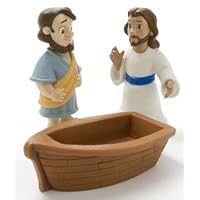 (More customer reviews)I purchased this set containing Jesus and Peter in the boat for a display at our church during the week that our scripture was on the topic where Jesus gets out of the boat and walks on the water and Peter seeing this wants to do the same however, when he tries it he loses his faith and starts to sink so Jesus helps him back up. I think it is an excellent little visual effect for the congregation to connect with even though it is small. I was expecting it to be a little larger. Joan Fratantuono