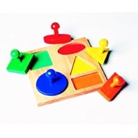 Children learn color, shape and size recognition with these basic geometric forms. Color coded base and 2 inch high easy-grip handles aid young children in successfully completing the puzzle. Material: Hardwood.