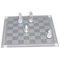 Get ready to do battle in style with this elegant 32 piece Glass Chess Set. The 7-1/2" by 7-1/2" beveled board is made of smoky glass with contrast etching for the playing squares and felt anti-scratch pads underneath. The 32 chessmen are either clear or frosted, with felt bottoms for easy maneuvering on the board. Truly a classic game of sophistication and strategy this Chess Set will be cherished for years to come. When you are not playing, it makes an attractive addition to any home or office decor. WARNING: CHOKING HAZARD - Not for children under 3.