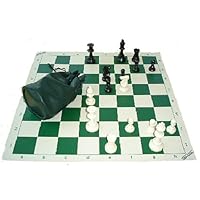 The ChessCentral Sovereign chess set is a Staunton design full tournament-size, massively triple weighted and felt padded plastic chess set. Get the durability of impact resistant plastic along with the classic Staunton look. The chess set features a full 3.75" King with a stable base of 1.5" diameter. We have made the chess pieces even better! You will never again have a turned-over a wobbly Rook for that promoted pawn because the Sovereign comes with 4 Queens.Need a neat and tidy way to carry and store your chess pieces? You will love this vinyl chess bag just perfect for chess pieces with King height up to 3.75 (even with 4 Queens!) and smaller. Plus FREE - you will enjoy the feel of this leather-like and durable vinyl bag. Chess pieces stay secure because the bag is closed with a heavy drawstring, just the right size to knot for extra security. A $9.95 value!Chess pieces are not complete without a perfect sized chess board. This green vinyl chess board will last with day to day use. This vinyl chess board is made to resist tears, spills, and daily abuse. You will love this lightweight, roll-up chessboard! It is easy to take to tournaments, clubs, or next door. Clear and legible algebraic notation, 20"x 20", with 2.25" square size meets all chess tournament standards. All from the leader in curring-edge chess - ChessCentral!