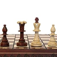 This chess set is a wonderfully detailed collectible carved of solid hornbeam wood. Each chess piece is individually handcrafted.Folding Birch wood chess board stows away your chess pieces inside when you're not playing. Made from renewable plantation wood.