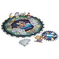 Includes: four soft plastic playing pieces, large round gameboard with bright, friendly characters, big spinner, 14 cardboard spoons to collect and adorably illustrated storybook with instructions.