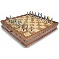 The American civil war continues to be one of the most popular themes for chess sets in America. This beautifully sculpted chess set is hand painted with exacting detail depicting the opposing leaders and their soldiers in the most bloody war in American history. The king is 3.25" tall and with a 1.125" diameter base. Pieces are made from cast polystone, a very hard, stone like material. Pieces are intricately sculpted and hand painted with an amazing level of fine detail. Chess Set Specifications & Features: Chess Case Specifications & Features: * Packaged in decorative cardboard box with formed tray for individual piece storage. * Material: Solid Walnut & Other Wood Veneers * Dimensions: 19.5" x 19.5" x 3.25" * Square Size: 2" * 2 felt-lined drawers that will hold chess pieces with up to a 1.625" diameter base.