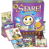 Kids can test and train their visual memory skills and have a blast doing it. In Stare! Junior - the game - players have 30 seconds to stare at an image on a card. Images are varied and fun for kids to look at. It might be a movie poster, funny photo, comic, work of art and more. When time is up, an opponent will flip over the card and ask the player a series of questions about the image to see how much they can recall. What was the clown holding in his left hand? What color was the girl's hat? Guess right and advance on the game board. Kids can play individually or on teams. The revised Second Edition includes larger image cards containing all new images and questions!Includes 960 questions on 160 image cards, game board, sand timer, playing pieces, die, and instruction sheet.