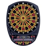 The Arachnid Interactive 3000 electronic dart board will keep you on your toes thanks to the unique (and often hilarious) Heckler electronic comment feature. It dishes out praise for precision dart throwing ("You da man!") and comical sarcasm for sloppy effort ("Open your eyes!"). This board features 27 games with 123 options, including five cricket games, and it can accommodate up to eight players. It has a 13.5 inch target area and an LED display of player game and cricket scores is easy to read. Other features include solo play feature, sleep mode, Play On and ranking features, and player handicapping.