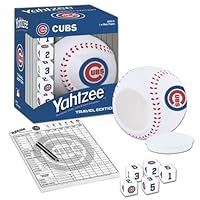 Take me out to the ballgame! Hit the field with this Chicago Cubs edition of YAHTZEEAmerica?s #1 Dice Game featuring one-of-a-kind Cubs dice and a baseball dice cup. It?s the only game where family and friends can enjoy classic YAHTZEE game play with a special Cubs twist. The travel-sized game includes a Cubs baseball dice cup with lid that stores five custom dice featuring authentic Cubs jersey numbers and the Cubs logo and custom Cubs score pads. Roll the dice to make a winning combination like Full House or Five of a Kindthat?s a YAHTZEE home run! It?s the perfect game for stadium tailgating and on-the-go fun! AGES 8+ 1-4 Players