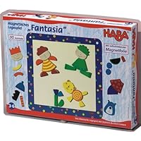 (More customer reviews)This would be really great except the magnets don't stick to the wood pieces. We also have the Haba Indian Summer and those magnets stick really well. These slide right off so you end up with a pile of wood shapes that don't stick to the magnet board. Also, while the other Haba magnetic arranging games have a thin wood magnetic board, this one is just a piece of cardboard.