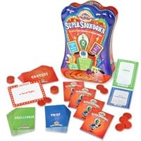 Who would win a pillow fight - a leprechaun on stilts or a grandma on roller skates? In Cranium Super Showdown, you and your family and friends will pick wacky challengers and take on crazy contests like a treasure hunt or food fight. Add outrageous twists to better your odds, then make your case for the ultimate champion. Features cool trophy tokens and thousands of hilarious combinations. Quick and easy to play. Game includes 60 contest cards, 100 challenger cards, 100 twist cards, five secret keepers, 30 trophy tokens and rules sheet. Tin measures 10" x 6.5". For 4-6 players.