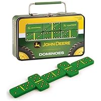 Enjoy all the fun of classic dominoes packaged in a unique industrial-style collectors tin! 28 green dominoes sport the classic John Deere logo on one side, while John Deere tractor tires replace traditional pips on the other side. Includes five fun and easy to learn domino games in both English and Spanish. Perfect for the John Deere fan on the go!