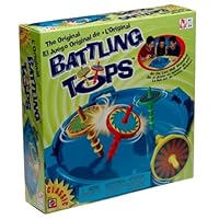 Back with a new look, the Original Battling Tops were first introduced in 1968. This classic game has two to four players facing off in an arena, each with their own spinning top. The last player spinning is the winner of the round. The first player to win ten rounds is the grand champion! Players launch their tops into the arena with spinner handles, spinner stickers and score pegs, all included. Stadium measures 10"L x 10"W x 2"H.