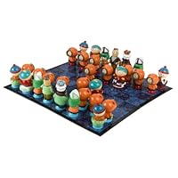 Dude! Checkmate!The insanity of South Park has finally been captured in this collector's chess set that has been designed with the true fan in mind.Kenny, Kyle, Stan, and Cartman are all here!Sweeet!So set up the board, open up a bag of Cheezy Poofs, and have at it!Includes:Kenny as the Pawns, Stan as the Rooks, Cartman as the Knights, Kyle as the Bishops, Chef as the Kings, and Big Gay Al as the Queens.